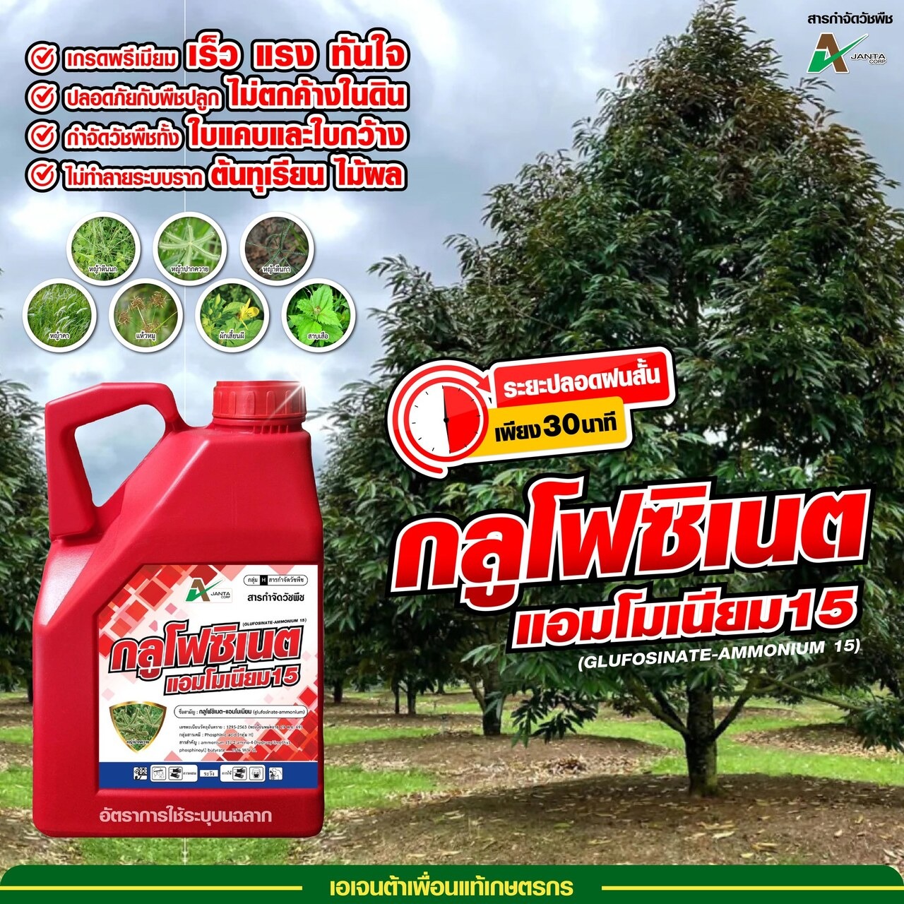 โคนต้นสะอาด หญ้าตายเรียบ ด้วย กลูโฟซิเนตแอมโมเนียม